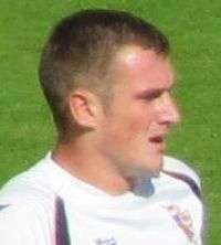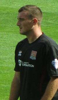 He joined Northampton Town until the end of the 2012–13 season in February 2013.[36] Manager Aidy Boothroyd signed him to provide competition in the "Cobblers" defence, particularly to left-back Joe Widdowson.[36] On 20 April, he scored an own goal at Vale Park which effectively promoted his former club, Port Vale, back into League One.[37] He was allowed to participate in the play-offs, despite being subject to a curfew order.[38] He played 55 minutes of the play-off final defeat to Bradford City.[39] He signed a new two-year contract in May 2013.[40]