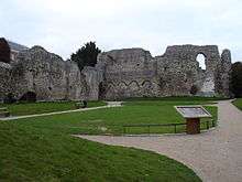 In the 12th century Henry I incorporated land at Leominster into the foundation of Reading Abbey.[2] Reading Abbey in turn founded a Benedictine priory in Leominster of which the Priory Church survives at grid reference SO49855927.[3] Whether the priory was built on the site of the original Anglo-Saxon monastery is not clear. However, archaeological evidence of Saxon activity has been uncovered at the priory.