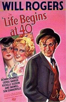 Life Begins at 40 is a 1935 black-and-white film starring Will Rogers and Richard Cromwell. It is based on the non-fiction self-help book Life Begins at 40 by Walter B. Pitkin.