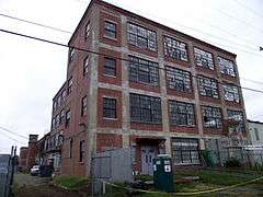 Liggett and Myers Tobacco Company is a historic factory building located at Huntington, Cabell County, West Virginia. The original building was built in 1917, and is a four story, red brick, Commercial Style warehouse building, measuring 140 by 80 feet (43 by 24 m). At the rear of the building is an addition built in 1920. It is a two story, red brick, Commercial Style warehouse building, measuring 210 by 80 feet (64 by 24 m). Also on the property is the redrying plant, built in 1910. It is a long, one story brick industrial building with a gable roof. The complex was built by the Liggett & Myers Tobacco Company as a tobacco warehouse and cigarette factory.[2]