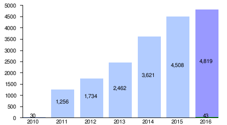 | 2010 | 2011 | 2012 | 2013 | 2014 | 2015 | 2016 | Total | ||