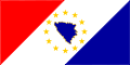 | Proposed, never used | First alternative in the second set of proposals. | A red, white, and blue diagonal tricolour with a silhouette map of Bosnia and Herzegovina within a circle of 10 gold 5-pointed stars. |