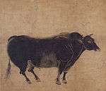 | Excellent Ox, light colour on paper 紙本淡彩駿牛図断簡 shihon tansai sungyū zu dankan | Kamakura period | Taitō | Agency for Cultural Affairs (kept at Tokyo National Museum) | | 35°43′08″N 139°46′36″E / 35.71896467°N 139.77653504°E | |||