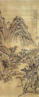 | Landscape, light colour on silk, by Li Zai 絹本淡彩山水図〈李在筆/〉 kenpon tansai sansui zu (Ri Zai hitsu) | Ming dynasty | Taitō | Tokyo National Museum | 138.8 centimetres (54.6 in) by 83.2 centimetres (32.8 in) | 35°43′12″N 139°46′32″E / 35.71994403°N 139.77563736°E | |||