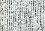 There are ten National Treasures of six works of Japanese prose and mixed Chinese-Japanese poetry compiled from between the early 9th and the first half of the 13th century. The manuscripts in this list date from between the early 10th to the second half of the 13th century.[4] The three volume Nihon Ryōiki was compiled by the private[nb 7] priest Kyōkai around 822.[87][88][89] It is the oldest collection of Japanese anecdotes or folk stories (setsuwa) which probably came out of an oral tradition.[87][89] Combining Buddhism with local folk stories, this work demonstrates karmic causality and functioned as a handbook for preaching.[87][88][90] Two[nb 8] out of four[nb 9] extant distinct but incomplete manuscripts have been designated as a National Treasures.[91]
