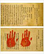 The objects in this list represent about one third of the 223 National Treasures in the category "writings". They are complemented by 56 Chinese book National Treasures and 99 other written National Treasures.[4]