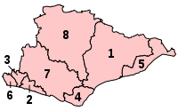The ceremonial county of East Sussex, (which includes the unitary authority of Brighton & Hove) is divided into 8 Parliamentary constituencies - 4 Borough constituencies and 4 County constituencies.