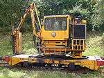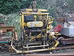 | Rail mounted track tamper. Parts of two ex-MOD standard gauge tampers were acquired in 1989 and one complete machine was assembled and commissioned on 26 June 1990.[30] | ||||