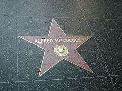 Hollywood Boulevard and Vine Street in the district of Los Angeles, California) are permanent public monuments to various artists for their achievement in the entertainment industry, as well as to fictional characters.[43] Hitchcock received two stars – one with the symbol of classic film camera representing his motion pictures, and one with the television set emblem for his contribution to broadcast television, both on 8 February 1960.[1][44]
