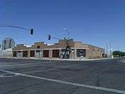 | The Tovrea Land and Cattle Co. Administration Building / Stockyards Restaurant is located at 5009 E. Washington St. In 1919, Edward A. Tovrea, the "Cattle Baron," opened his Phoenix packing house west of 48th Street and Van Buren to support his growing beef operations. The Tovrea Land and Cattle Co. had grown to nearly 40,000 head of cattle secured by 200 acres of cattle pens, making it the world's largest feedlot. In 1947, The Stockyards Restaurant officially opened and quickly became a favorite gathering place for cattlemen, bankers and politicians. Although cattle fortunes faded in the late 1950s and pens slowly gave way to urban growth, the popularity of Arizona's Original Steakhouse remained intact. [11] The property was listed in the Phoenix Historic Property Register in March 2004. |