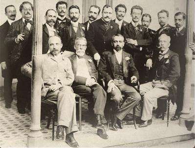 | Standing: Rodolfo Amoedo, Artur Azevedo, Inglês de Sousa, Olavo Bilac, José Veríssimo, Sousa Bandeira, Filinto de Almeida, Guimarães Passos, Valentim Magalhães, Rodolfo Bernadelli, Rodrigo Octavio and Heitor Peixoto. Sitting: João Ribeiro, Machado de Assis, Lúcio de Mendonça and Silva Ramos. |