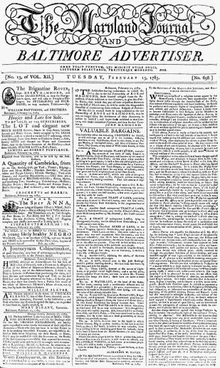 - The Maryland Journal, and Baltimore Advertiser. W., S.W., Aug. 28 (?), 1776-Dec. (?), 1794.[1]