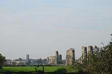 The nymphaeum called the Temple of Minerva Medica ("Minerva the Doctor") is a 4th-century ruin between the via Labicana and Aurelian Walls and just inside the line of the Anio Vetus. Once part of the Horti Liciniani on the Esquiline Hill, now it faces the modern via Giolitti. It is dodecagonal nymphaeum of opus latericium, whose full dome only collapsed in 1828. Both the interior and exterior walls were once covered with marble.[8] Since the 17th century the nymphaeum has frequently been wrongly identified with the Temple of Minerva Medica mentioned in literary sources, on account of the erroneous impression that the Athena Giustiniani had been found in its ruins.[9]