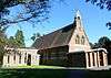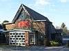 Protestant Nonconformity has a long history in the district. Baptist worship has taken place at Dormansland since 1792, and the church (which occupies a building dating from 1817)[20] helped to found several others in the area—such as those at Lingfield and Smallfield (both now closed).[21] The isolated Pains Hill Chapel near Limpsfield has existed since 1823,[22] and since World War II Evangelical congregations have developed in Hurst Green[23] and Smallfield.[24] Meanwhile, the village of Newchapel was chosen as the site of England's first Latter-day Saints' Temple, named the London England Temple.[25] The main towns have places of worship serving a wider variety of denominations: the Congregational Federation can be found in Caterham,[26] Oxted has an Open Brethren Gospel Hall,[27] a Quaker meeting house[28] and a Christian Science church,[29] and both places support Roman Catholic, Methodist and United Reformed congregations. Oxted's Catholic and United Reformed churches are both Grade II-listed: the former, a "quite exceptional building" of the early 20th century, combines the Perpendicular Gothic Revival and Arts and Crafts styles,[30] while the Church of the Peace of God (the United Reformed church) is a 1930s interpretation of the Byzantine style.[31] Elsewhere, the Plymouth Brethren have a meeting room in the former goods yard next to Upper Warlingham railway station in Whyteleafe.[32]