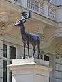 Lions sejant | The Law Society, Chancery Lane | 1852 (original model) | Stevens, AlfredAlfred Stevens | Holden, CharlesCharles Holden | Iron railing finials | Grade II* | Copies of the figures originally designed for the (now removed) dwarf-posts outside the British Museum, incorporated by Holden into his 1902–4 Law Society extension. The same design also appears on the railings surrounding Stevens's magnum opus, the Duke of Wellington's tomb in St Paul's Cathedral (completed in 1912).[8][9] |