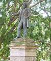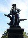 A monument to the celebrated explorer James Cook.[11][12][13] Woolner wrote: "My idea is, ... to make an animated figure filled with wonder and delight, in the moment of discovering a new country; smitten by the sun, he would always stand a shining welcome to all comers to the fair Australian land."[14] | |