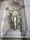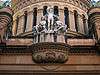 The building's architect – James Barnet – placed naturalistic statues in its niches. On the Bridge Street elevation are Australian explorers, to "convey the story of the opening up of the land in the colony".[30] Among them is a representation of John Oxley, by W.P. MacIntosh, which was the last statue to be installed in its niche.[31] Also featured on this elevation are Ludwig Leichhardt, Thomas Mitchell, Robert O'Hara Burke and William Hovell (by MacIntosh); and George Bass (by James White). |