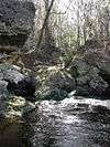 Many of the springs listed herein are indicated as privately owned, which is a misnomer. "Private individuals cannot 'own' a spring that is along/accessible from a navigable waterway. They own the land around it above the normal high water mark."[14] Since the 1972 Clean Water Act (CWA) defined the term "navigable waters", the meaning has been litigated. Following U.S. Supreme Court rulings, the Federal Register published EPA's final definition on November 26, 2008. Section (3) states: "intrastate lakes, rivers, and streams which are utilized by interstate travelers for recreational or other purposes (are navigable waters).[15] Courts have ruled that "shallow streams that are traversable only by canoe have met the test".[16]