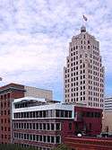 This list of tallest buildings in Fort Wayne ranks skyscrapers and high-rises in the U.S. city of Fort Wayne, Indiana, by height. The tallest building in the city is the 27-story Indiana Michigan Power Center, which rises 442 feet (135 m) and was completed in 1982. The building stands as the fourth-tallest building in Indiana and the tallest outside Indianapolis. It is also the tallest reinforced concrete building in Indiana.[1] The city's second-tallest building is PNC Center, which rises 339 feet (103 m). Of the 40 tallest buildings in Indiana, three are located in Fort Wayne.[2] As of May 2015, there are two completed skyscrapers[3] and ten completed high-rises in the city, with one under construction.[4]