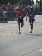 The 2007 Chicago Marathon final 200 meters was a duel between Patrick Ivuti (right) & Jaouad Gharib (left). Ivutu won by 5/100th of a second.