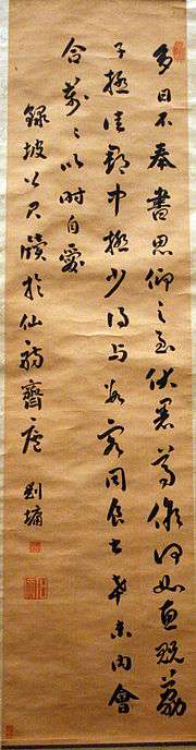 Liu Yong (Chinese: , 1719–1805) was a Chinese politician and calligrapher in the Qing dynasty.[1] He served in a number of high-level positions with a reputation for being incorruptible, including as the Minister of Rites and Minister of War,[1] and is regarded by some as the "most influential calligrapher of his time".[2]