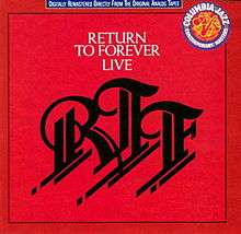 Live is the final album by fusion band Return to Forever. It was recorded live at the Palladium in New York City on May 20 and 21 1977 as part of the Musicmagic tour to support the album of the same name. This was the only tour to feature the Musicmagic (1977) lineup, which included original members Chick Corea, Stanley Clarke, and Joe Farrell, along with newly added member, Chick Corea's wife, Gayle Moran on vocals, piano and organ, and a six-piece horn section.
