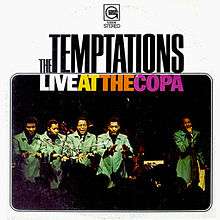 Live at the Copa is a 1968 live album recorded by The Temptations at the Copacabana supper club in New York City. Released in 1968 by Gordy (Motown) Records, Live at the Copa features new lead singer Dennis Edwards in place of David Ruffin. Edwards' first studio album with the Temptations would be the group's next album, 1969's Cloud Nine.