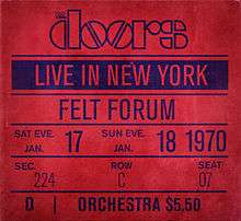 Live in New York is a six-disc box set of the final four concerts performed by The Doors on January 17 and 18, 1970 at the Felt Forum in New York City. About a third of the material on the set was previously unreleased.