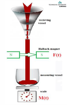 Lorentz force sigmometry (LOFOS)[19] is a contactless method for measuring the thermophysical properties of materials, no matter whether it is a fluid or a solid body. The precise measurements of electrical value, density, viscosity, thermal conductivity and surface tension of molten metals are in great importance in industry applications. One of the major problems in the experimental measurements of the thermophysical properties at high temperature (>1000 K) in the liquid state is the problem of chemical reaction between the hot fluid and the electrical probes. The basic equation for calculating the electrical conductivity is derived from the equation that links the mass flow rate and Lorentz force generated by magnetic field in flow: