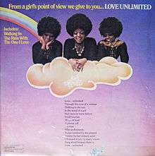 From a Girl's Point of View We Give to You... Love Unlimited is the debut studio album of American soul vocal trio Love Unlimited, released in 1972 on Uni Records and MCA Records. Produced by soul recording artist Barry White, for whom the trio served as a backing group at the time, the album was arranged by White and conductor Gene Page. It was digitally remastered by recording engineer Bill Inglot and reissued on May 10, 1994 by Varèse Vintage.[2]