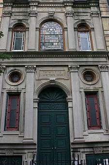 The neighborhood still has many historic synagogues, such as the Bialystoker Synagogue,[32] Beth Hamedrash Hagadol, the Eldridge Street Synagogue,[33] Kehila Kedosha Janina (the only Greek synagogue in the Western Hemisphere),[34] the Angel Orensanz Center (the fourth oldest synagogue building in the United States), and various smaller synagogues along East Broadway. Another landmark, the First Roumanian-American congregation (the Rivington Street synagogue) partially collapsed in 2006, and was subsequently demolished. In addition, there is a major Hare Krishna temple and several Buddhist houses of worship.