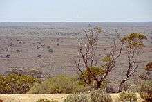 The land is mostly gently undulating calcareous plains with eucalypt–melaleuca–myall woodlands and chenopod shrubland interspersed with saltbush shrubland and bindii grassland.[4] Many caves can be found amongst the limestone bedrock of the Nullarbor Plain.[5]
