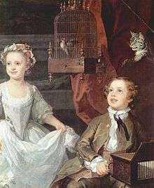 Children with cat and cage-bird, 1742. The bird is probably a goldfinch.