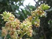 Flowers appear at the end of winter and beginning of spring. Both male and female flowers are borne on same tree.The Climatic conditions have significant influence on the time of flowering of mango.In India flowering starts from December in the South and in January in Bihar and Bengal, and in February in eastern Uttar Pradesh, and in February–March in northern India. The duration of flowering is 20–25 days in Dashehari, while panicle emergence occurs in early December and flower opening is completed by February. It is well known that the Neelum variety of mango produces two crops a year in Kanyakumari, in South India, but flowering only once in North Indian conditions[3]