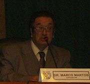 Marco Martos Carrera (November 29, 1942 in Piura, Peru) is a Peruvian poet and the President of the Academia Peruana de la Lengua.[1] It's assumed from critics to be one of the most important persons of the Peruvian "60's generation". Critics also appoints that he uses a simple way of expression with an ironic way to project the life. We can find in his work topics like 'loneliness' and 'existentialism'.