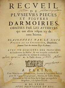 Marc Vulson de la Colombière (†1658)[1] or Sieur de la Colombière was a French heraldist, historian, poet, minion of the royal court. His name is sometimes spelt as Wulson and also as Volson.
