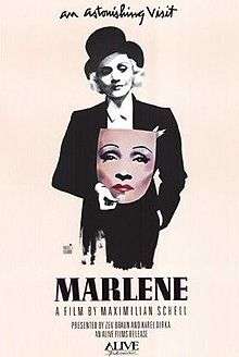 Marlene, also known in Germany as Marlene Dietrich - Porträt eines Mythos, is a 1984 documentary film made by Maximilian Schell about the legendary film star Marlene Dietrich. It was made by Bayerischer Rundfunk (BR) and OKO-Film and released by Futura Film, Munich and Alive Films, (USA).