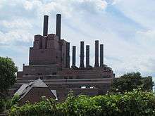Work on the plant began in 1914, as demand grew for electrical power north of Metro Detroit. The plant started generating electricity in 1922 with its first original two units. Two more units were added in 1926. During the mid 1940s, the "high side" was added to the power plant.[4] The "high side" referred to higher pressure steam which could turn higher capacity 75MW generators. During this period nearly 300 people worked at the Power Plant. The plant also had a max capacity of 300MW when both the low and high sides were operational. Between 1988 and 1992 the plant was idled, and returned to service in 1992. For nearly the next ten years, the power plant would continue to run with the two "high side" units with a total of 150MW.[5] In 2001 the plant was idled again. In 2012 the plant was officially decommissioned and the property was placed on the market.