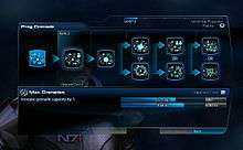 Mass Effect 3 has three pre-set campaign modes: Action Mode, Story Mode, and RPG Mode.[21] In Action Mode, conversations have automatic replies and a normal combat difficulty. In Story Mode, conversations have manual replies and a minimal combat difficulty. In RPG Mode, which is reflective of the typical Mass Effect experience, conversations have manual replies and a normal combat difficulty. Overall, the RPG elements in the game have been improved over those in Mass Effect 2, with a more detailed leveling up system and increased weapon customization.[22] To level up characters, players have skills that start along a single path but eventually splinter into two branches where they can select only one upgrade or the other along a sequence of possibilities.[23] Players can also customize their weapons with different scopes, mods, barrels, and ammo types.[24] There are 25 weapon mods total — five per weapon type — and each of them will have multiple power levels to collect.[25] For Kinect users, players have the option to speak their choices instead of selecting them with a controller.[26]