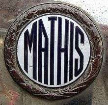 Mathis was a firm in Alsace that produced cars between 1910 and 1950, founded by Émile Mathis (1880–1956) born Strasbourg (then in Germany), died Geneva.