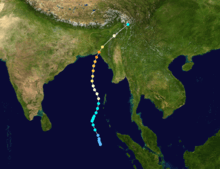 ![]() The cyclone near peak intensity off the coast of Bangladesh | |