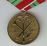 The Medal "In Commemoration of the 300th Anniversary of Saint Petersburg" (Russian: Медаль «В память 300-летия Санкт-Петербурга») is a state commemorative medal of the Russian Federation established on February 19, 2003 by Presidential Decree № 210[1] to denote the 300th anniversary of the foundation of the city of St Petersburg, known as Leningrad during the Soviet Era.
