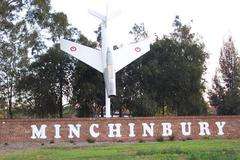 - A facsimile of the original CAC Avon Sabre jet aircraft (that had been installed at the entrance to the vinery in 1955 with the accompanying sign "Don't Crash, Drink Penfolds") is mounted about 10 m off the ground, in a nearly vertical manner, at the intersection of the Great Western Highway and Minchin Drive (adjacent to Minchinbury Reserve).