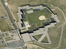 The prison is architecturally designed into the side of a hill to accommodate 481 offenders on a 160-acre (0.65 km2) site, which is connected by two corridors on separate levels. One of the Corridors is used only for the staff, while the other corridor is used primarily for offenders and staff traffic, while the other 60 acres of this site are securely fenced in, with a large courtyard and baseball field in the center. Inmate cells measure seven by ten feet. Each cell contains a bed, table, toilet, and sink. The bed is a cement slab topped by a thin mattress. The toilet and sink are made of steel so they can’t be broken. Each cell also has one rectangular window that’s tall and thin. It is too narrow to escape through if the inmate could break the reinforced glass, and tests have proven it would take approximately twelve thousand hacksaw blades to cut through the steel bars of the prison. Not only does the prison provide a courtyard with a baseball field, but also includes an administration building, a religious resource room, gymnasium, security control center, staffed training fitness area, warehouses, a loading dock, and indoor firing range.