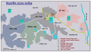 The village Mirerkhil is situated between two hills, Sitakunda hill and hills of Chittagong hill tracts. Village is bounded by Green paddy fields, water tanks and large Nodhailla Dhoba. Famous river of Chittagong district Halda River is flowing outer skirt of village. Village's direct angular distance from Bay of Bengal is 22 km and Sitakunda hills situated between sea and the village. Amtali village is to north, in East side Fakirachang village and in West side is Azimpur Mouza. There are some water tanks by name Mirer Pukur, Khondakar Pukur, Azala Pukr & Bania Pukur of pre British period available in the village.[2]