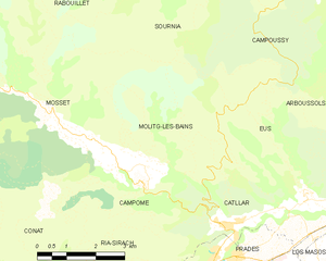 Molitg-les-Bains is located in the canton of Prades and in the arrondissement of Prades.