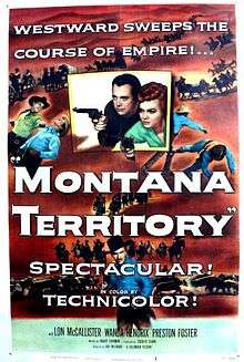 Montana Territory is a 1952 Technicolor Western film starring Wanda Hendrix, Clayton Moore, Hugh Sanders and Lon McCallister. It is a classic western movie, with bandits, a corrupt sheriff and a hero who falls for a beautiful woman.