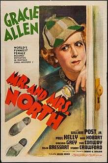 Mr. and Mrs. North is a 1942 American mystery film directed by Robert B. Sinclair, starring Gracie Allen and William Post Jr. as detectives Pam and Jerry North. The screenplay was based on a 1941 Broadway play by Owen Davis, which in turn was based on a series of mystery novels by Frances and Richard Lockridge. Pam North, a dizzy socialite, and her husband Jerry return home from a vacation to find a dead body in their apartment. All the suspects are close friends of the Norths, a fact that encourages Pam to gently interfere in the ongoing murder investigation conducted by Lt. Weigand (Paul Kelly).[1]