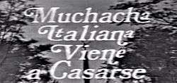 Muchacha italiana viene a casarse (Italian girl comes to get married) is a 1971 Mexican telenovela by Televisa produced by Ernesto Alonso and directed by Alfredo Saldaña, starring Angélica María and Ricardo Blume. Writing credits belong to Delia González Marquez (original story), Fernanda Villeli (adaptation), Marissa Garrido (adaptation), Miguel Sabido (adaptation) and Carlos Lozano Dana (adaptation)