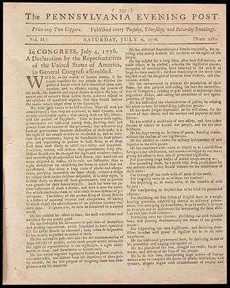 - ↑ "First Newspaper Printing of the Declaration". Museum of the American Revolution. Retrieved 31 March 2013.